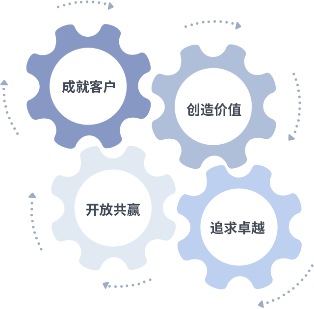 成就客户是一切决策的出发点,创造价值是衡量所有工作的标准,追求卓越是william威廉做事做人的态度,开放共赢是william威廉的格局也是最终的结果。价值观的齿轮环环相扣,推动着组织里的每个人不断向前。